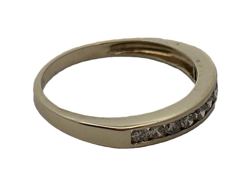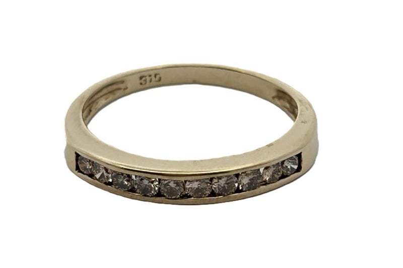 9CT YELLOW GOLD DIAMOND BAND, 10 ROUND BRILLIANT CUT DIAMONDS CHANNEL SET, ESTIMATE TOTAL DIAMOND WEIGHT 0.20CT, STAMP 375, RING WEIGHT 1.41 GRAMS. THIS ITEM HAS BEEN PROFESSIONALLY VERIFIED AS A GENUINE PRODUCT AND COMES WITH ACCOMPANYING 3RD PARTY CERTIFICATE OF AUTHENTICITYCondition: Good - Refer To Images