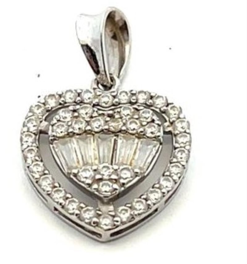 18CT WHITE GOLD CUBI ZIRCONIA HEART PENDANT, ROUND & BAGUETTE CUT CUBIC ZIRCONIA'S PAVE/CHANNEL SET IN HEART HALO PENDANT, STAMP 750, PENDANT WEIGHT 1.14 GRAMS. THIS ITEM HAS BEEN PROFESSIONALLY VERIFIED AS A GENUINE PRODUCT AND COMES WITH ACCOMPANYING 3RD PARTY CERTIFICATE OF AUTHENTICITY Condition: Good - Refer To Images
