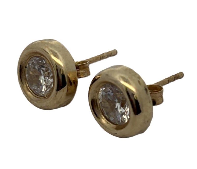 9CT YELLOW GOLD CUBIC ZIRCONIA STUD EARRINGS, EACH STUD INCLUDES A ROUND CUT CUBIC ZIRCONIA (5.4MM) BEZEL SET WITH STEM & BUTTERFLY FITTING, STAMP 375, TOTAL WEIGHT 0.94 GRAMS. THIS ITEM HAS BEEN PROFESSIONALLY VERIFIED AS A GENUINE PRODUCT AND COMES WITH ACCOMPANYING 3RD PARTY CERTIFICATE OF AUTHENTICITYCondition: Good - Refer To Images