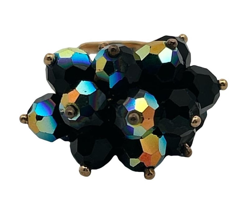 14CT YELLOW GOLD BLUE/GOLD METALLIC CRYSTAL CLUSTER RING, 16 BEAD CLUSTER SET IN AN ADJUSTABLE 3.76MM BAND, XRF GOLD TEST, RING WEIGHT 8.08 GRAMS. THIS ITEM HAS BEEN PROFESSIONALLY VERIFIED AS A GENUINE PRODUCT AND COMES WITH ACCOMPANYING 3RD PARTY CERTIFICATE OF AUTHENTICITYCondition: Good - Refer To Images997339+121