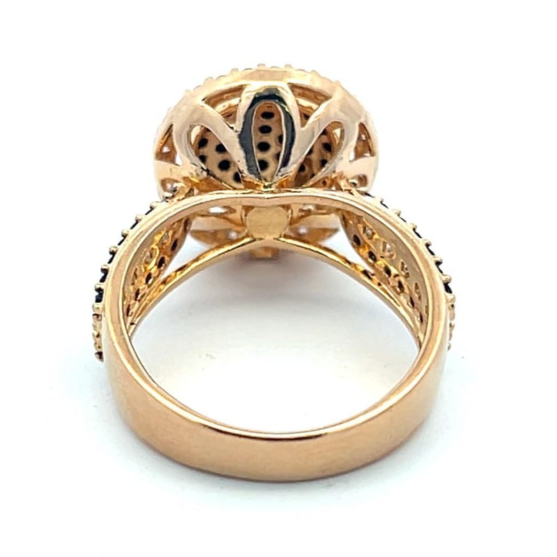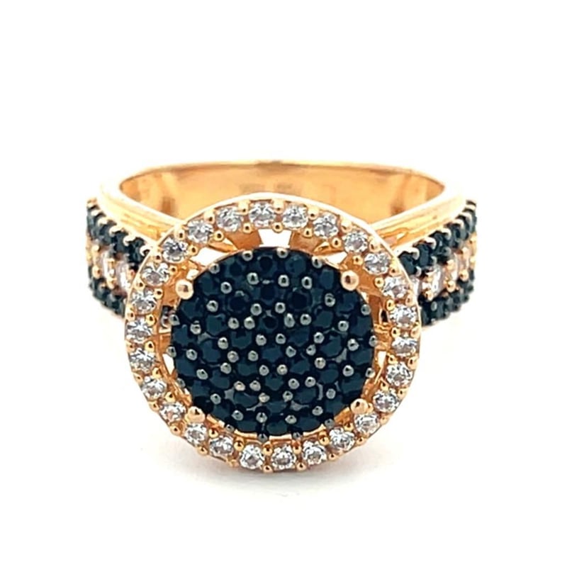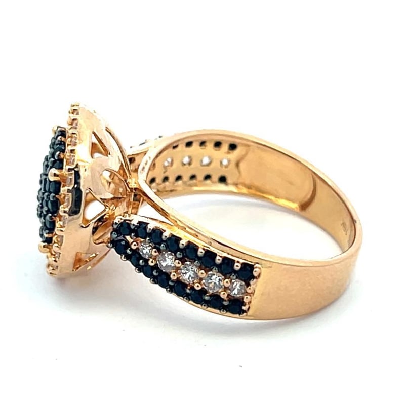 16CT ROSE GOLD BLACK & WHITE CUBIC ZIRCONIA HALO RING, 37 BLACK ROUND CUT ZIRCONIA'S PAVE SET SURROUND BY 25 WHITE ZIRCONIA'S WITH 16 BLACK & 5 WHITE ZIRCONIA PAVE SET ON EACH SHOULDER, STAMP 16K, RING WEIGHT 5.58 GRAMS. THIS ITEM HAS BEEN PROFESSIONALLY VERIFIED AS A GENUINE PRODUCT AND COMES WITH ACCOMPANYING 3RD PARTY CERTIFICATE OF AUTHENTICITYCondition: Good - Refer To Images997339+116