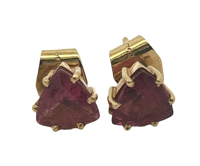 18CT YELLOW GOLD PINK TOURMALINE STUD EARRINGS, EACH EARRING: ONE TRILLIANT CUT TOURMALINE 6 CLAW SET WITH POST & BUTTERFLY FITTINGS, STAMP 18K, TOTAL WEIGHT 2.19 GRAMS.Condition: Good - Refer To Images997339+73