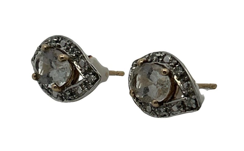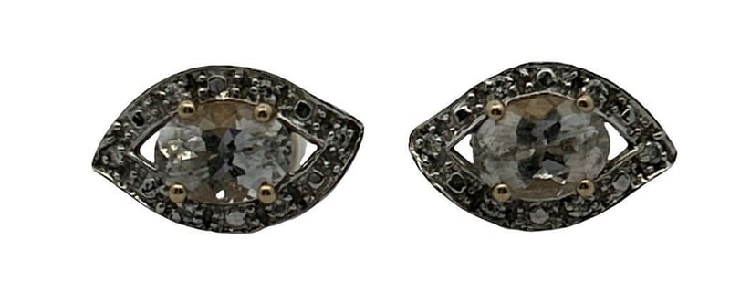 9CT YELLOW GOLD TOPAZ & DIAMOND STUD EARRINGS, OVAL COLOURLESS TOPAZ 4 CLAW SET SURROUNDED BY 6 ROUND BRILLIANT CUT DIAMONDS GRAIN SET, ACID GOLD TEST, POST & BUTTERFLY FITTINGS, TOTAL EARRINGS WEIGHT 1.93 GRAMS. THIS ITEM HAS BEEN PROFESSIONALLY VERIFIED AS A GENUINE PRODUCT AND COMES WITH ACCOMPANYING 3RD PARTY CERTIFICATE OF AUTHENTICITY