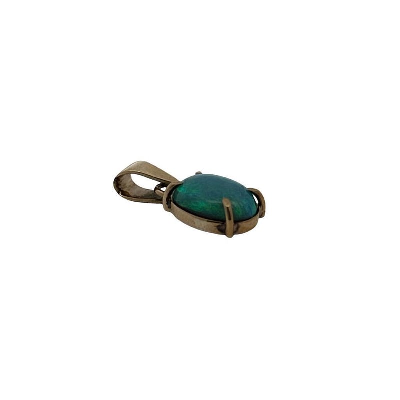 9CT YELLOW GOLD OPAL PENDANT WITH BALE, OVAL CABOCHON CUT OPAL DISPLAYING GREEN/BLUE FLASHES 4 CLAW, PENDANT MEASURES 18X8MM INCLUDING BALE, XRF GOLD TEST, PENDANT WEIGHT 1.05GRAMS. THIS ITEM HAS BEEN PROFESSIONALLY VERIFIED AS A GENUINE PRODUCT AND COMES WITH ACCOMPANYING 3RD PARTY CERTIFICATE OF AUTHENTICITY