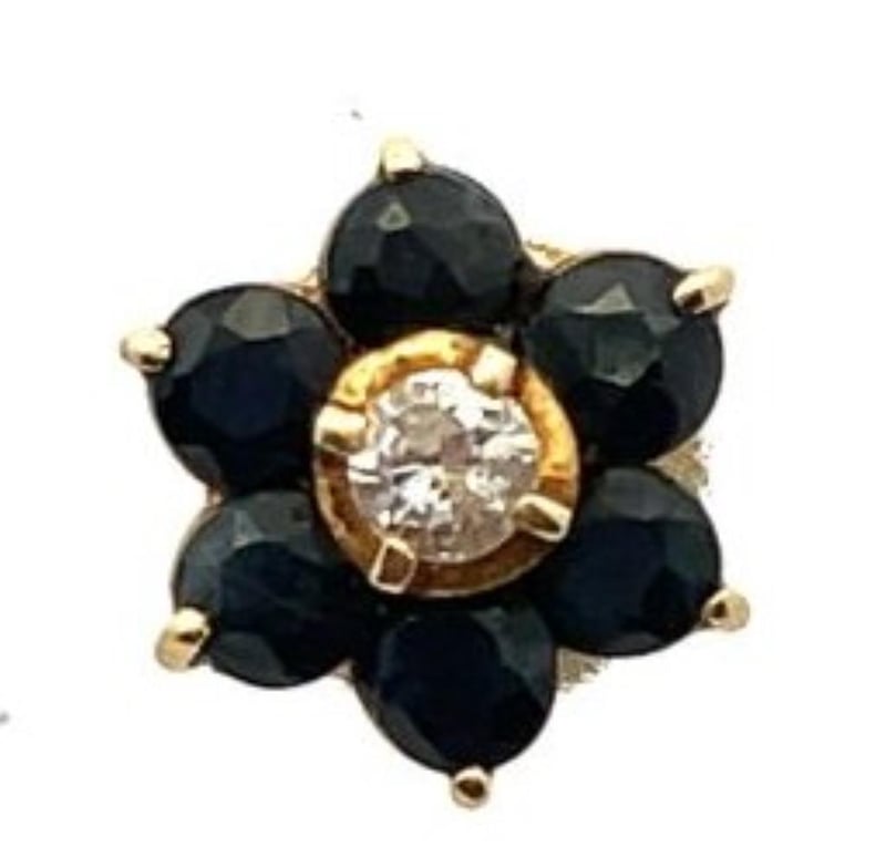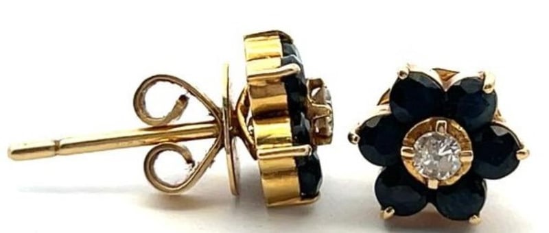 14CT YELLOW GOLD BLUE SAPPHIRE & 0.16CT DIAMOND CLUSTER STUD EARRINGS, EACH EARRING FEATURES CENTRE ROUND BRILLIANT CUT DIAMOND 4 CLAW SET SURROUNDED BY 6 ROUND CUT SAPPHIRES PART CLAW SET, ESTIMATE TOTAL DIAMOND WEIGHT 0.16CT, STEM & BUTTERFLY FITTINGS, TOTAL WEIGHT 3.03 GRAMS, GOLD ACID TEST. THIS ITEM HAS BEEN PROFESSIONALLY VERIFIED AS A GENUINE PRODUCT AND COMES WITH ACCOMPANYING 3RD PARTY CERTIFICATE OF AUTHENTICITY