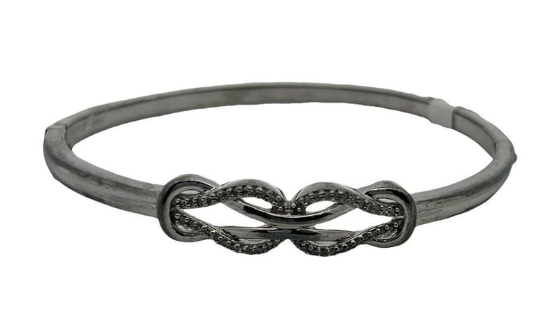 STERLING SILVER DIAMOND DOUBLE KNOT BANGLE, DOUBLE KNOT DESIGN WITH DIAMONDS PAVE SET, HINGED FASTENING WITH BOX CLASP & SAFETY CATCH, BANGLE DIAMETER 6.5CM, HALLMARK 925, WEIGHT15.7GRAMS.Condition: Good - Refer To Images997339+15
