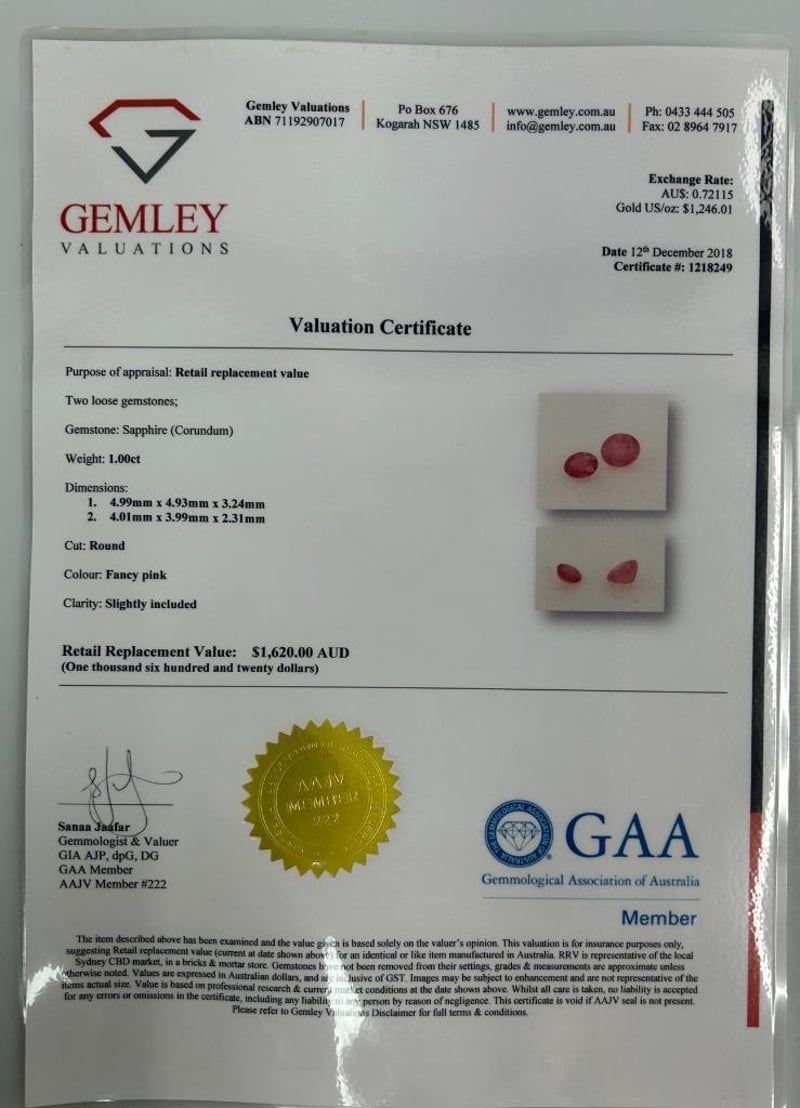 1.00CT TOTAL WEIGHT FANCY PINK NATURAL SAPPHIRES, ROUND CUT MEASURING 4.99 X 4.93 X 3.24MM AND 4.01 X 3.99 X 2.31MM WITH SLIGHTLY INCLUDED CLARITY. INCLUDES VALUATION CERTIFICATE $1,620.00.