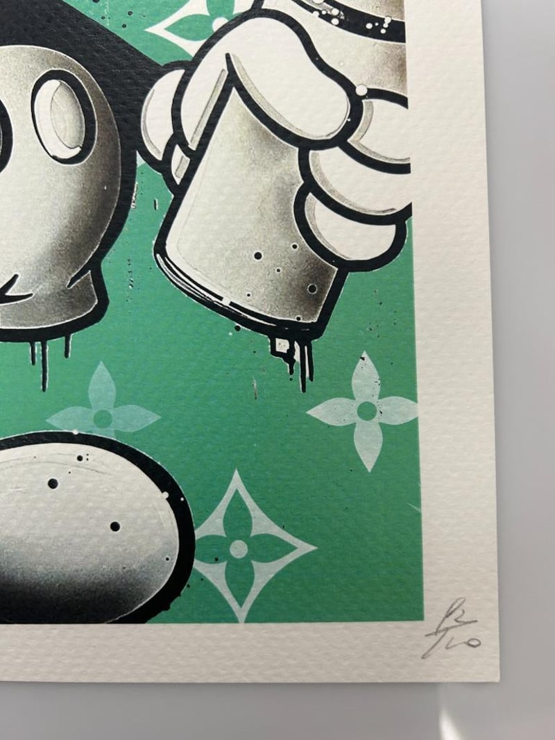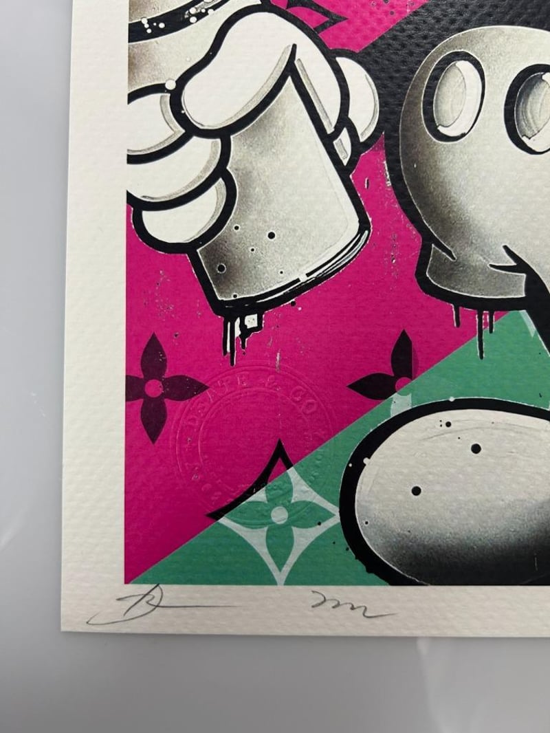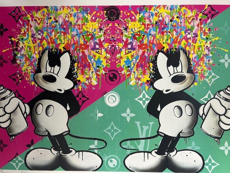 DEATH NYC SIGNED STREET ART PRINT 'MICKEY/ LV STYLE' LIMITED EDITION, SIGNED LOWER LEFT, NUMBER 82/100 LOWER RIGHT, 300 MGS FINE ART PAPER, EMBOSSED WATERMARK LOWER LEFT IN IMAGE, IMAGE MEASURES 41.9X 29.6CM, TOTAL SHEET MEASURES 45 X 32CM. CERTIFICATE OF AUTHENTICITY PROVIDED BY DEATH NYC.Condition: Good - Refer To Images997339+17