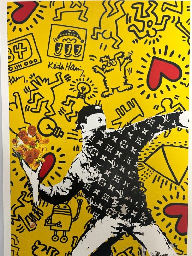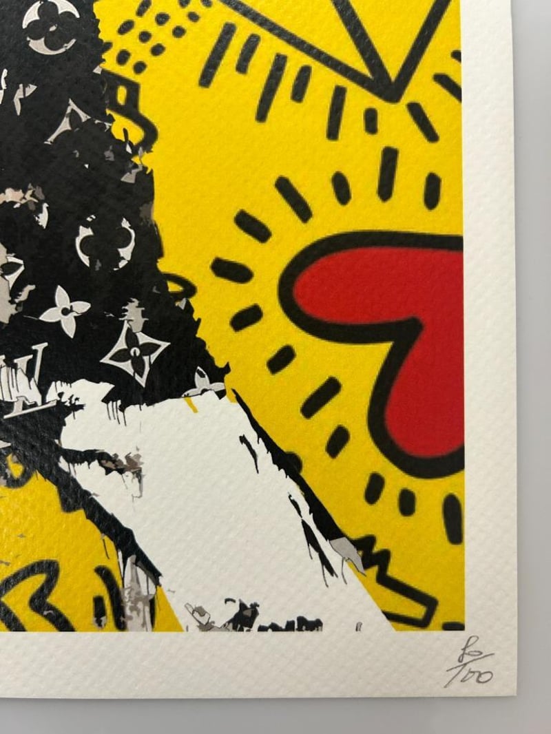 DEATH NYC SIGNED STREET ART PRINT 'KEITH HARING/ LV STYLE' LIMITED EDITION, SIGNED LOWER LEFT, NUMBER 84/100 LOWER RIGHT, 300 MGS FINE ART PAPER, EMBOSSED WATERMARK LOWER LEFT IN IMAGE, IMAGE MEASURES 29X27CM, TOTAL SHEET MEASURES 45 X 32CM. CERTIFICATE OF AUTHENTICITY PROVIDED BY DEATH NYC.