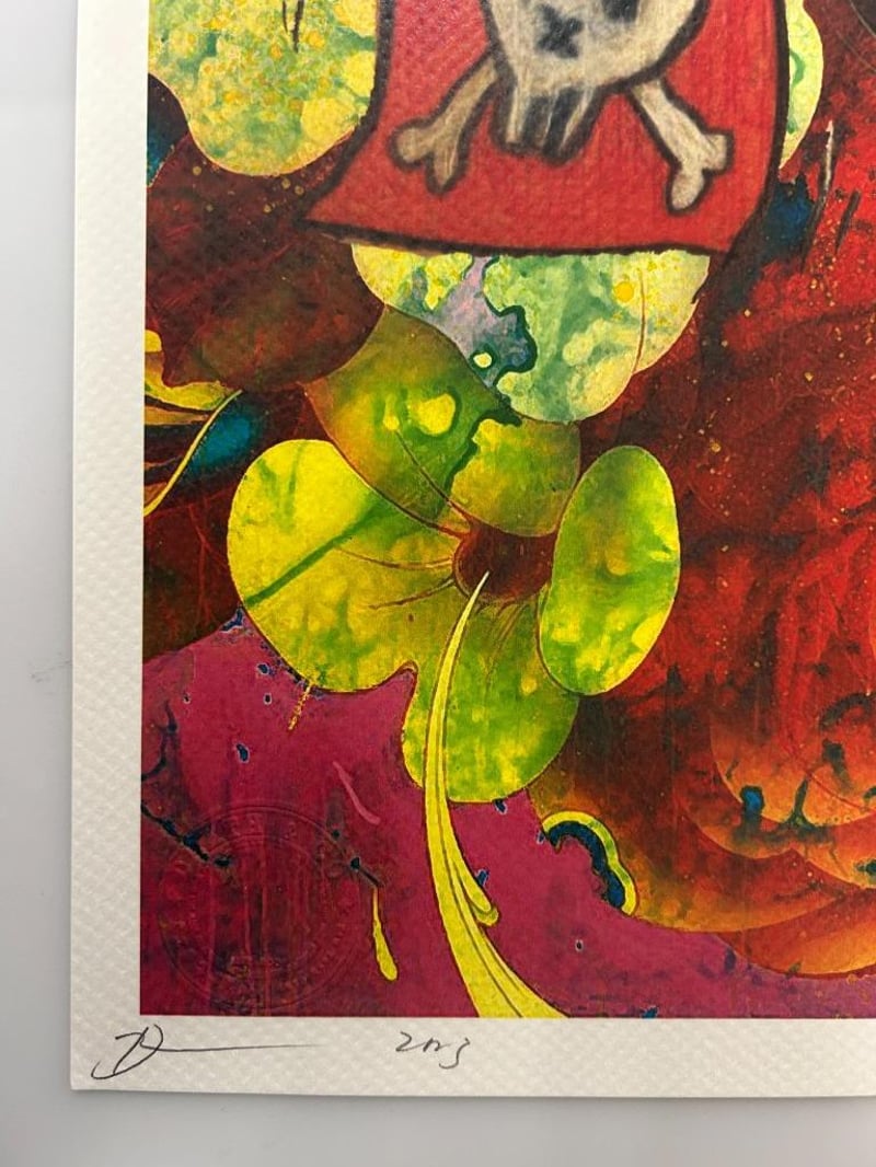DEATH NYC SIGNED STREET ART PRINT 'YOSHITOMO/SKULL STYLE' LIMITED EDITION, SIGNED LOWER LEFT, NUMBER 21/100 LOWER RIGHT, 300 MGS FINE ART PAPER, EMBOSSED WATERMARK LOWER LEFT IN IMAGE, IMAGE MEASURES 41.9X 29.6CM, TOTAL SHEET MEASURES 45 X 32CM. CERTIFICATE OF AUTHENTICITY PROVIDED BY DEATH NYC.