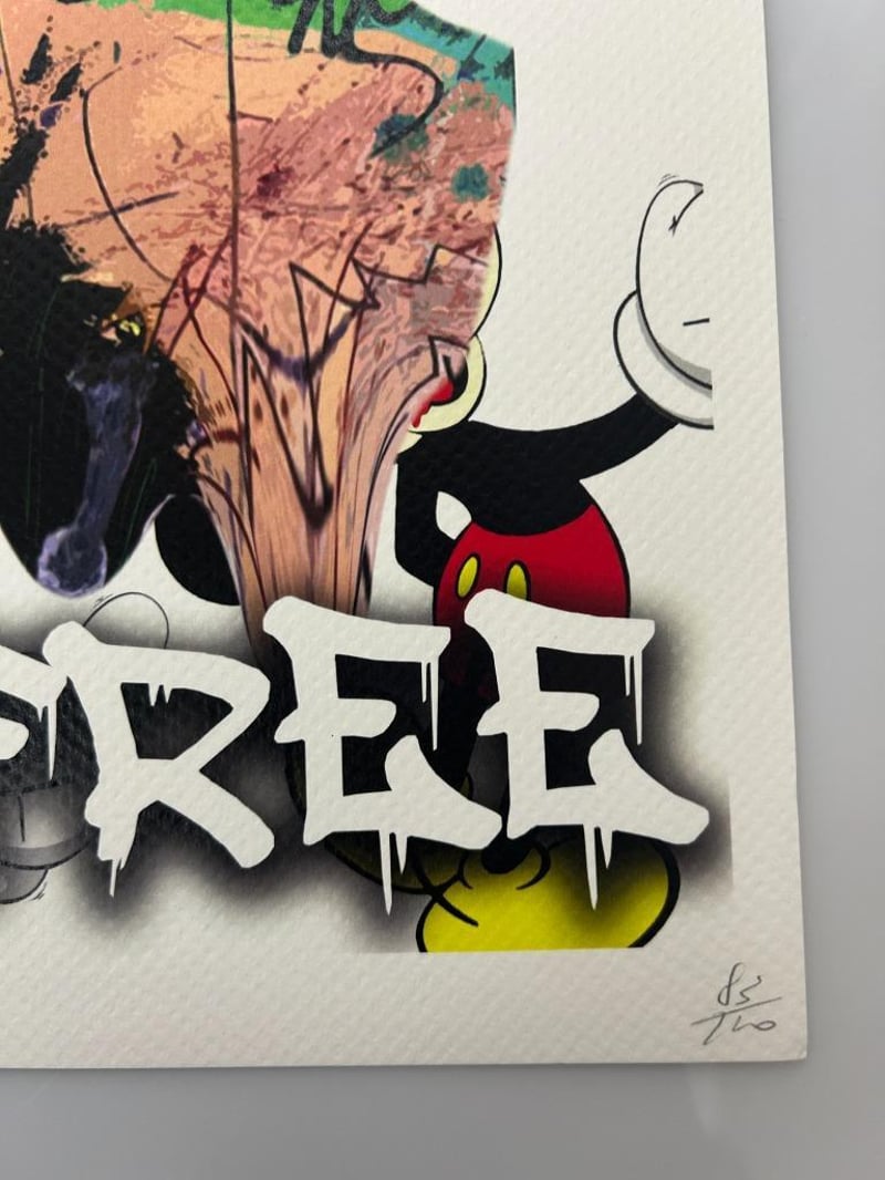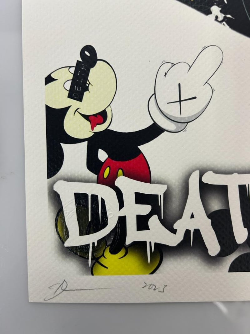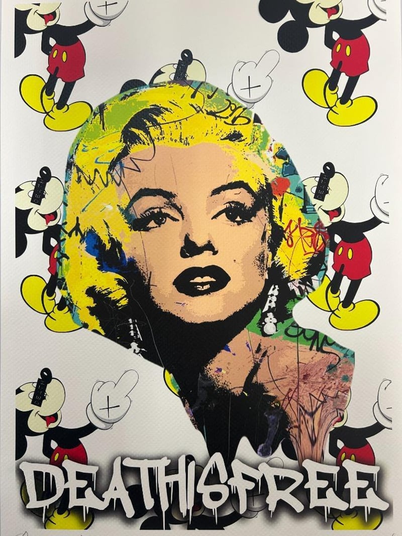 DEATH NYC SIGNED STREET ART PRINT 'MARILYN/MICKEY STYLE' LIMITED EDITION, SIGNED LOWER LEFT, NUMBER 83/100 LOWER RIGHT, 300 MGS FINE ART PAPER, EMBOSSED WATERMARK LOWER LEFT IN IMAGE, IMAGE MEASURES 41.9X 29.6CM, TOTAL SHEET MEASURES 45 X 32CM. CERTIFICATE OF AUTHENTICITY PROVIDED BY DEATH NYC.