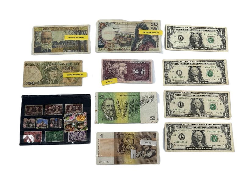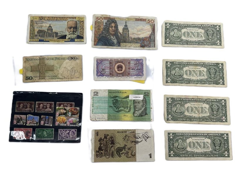 VARIOUS INTERNATIONAL & AUSTRALIAN BANK NOTES & STAMP COLLECTION.