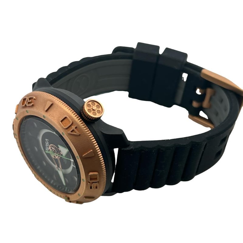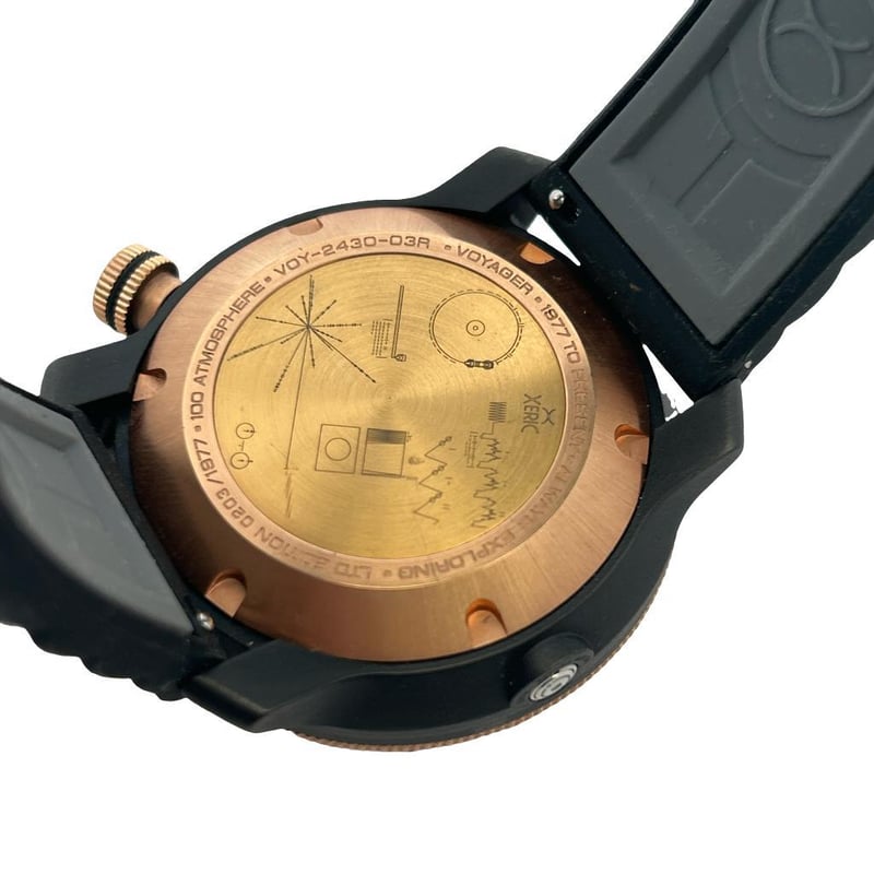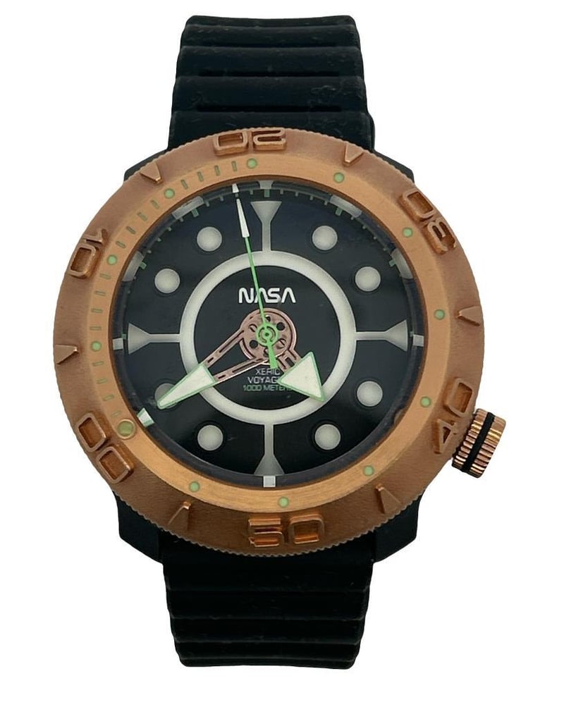 XERIC NASA VOYAGER AUTOMATIC 1000M DIVERS LIMITED EDITION WATCH, REFERENCE: VOY-2430-03A, BLACK DIAL WITH LUMINOUS HOUR MARKERS & HANDS, CASE MEASURES 44MM, SEIKO NH38 AUTOMATIC MOVEMENT, BRUSHED ROSE GOLD-TONE ROTATING BEZEL, WATER RESISTANT 1000M, SAPPHIRE CRYSTAL, SILICON RUBBER STRAP WITH ROSE GOLD-TONE BUCKLE, LIMITED EDITION 203/1977.
