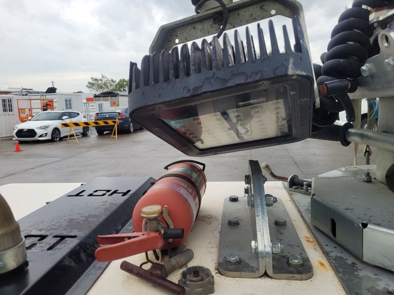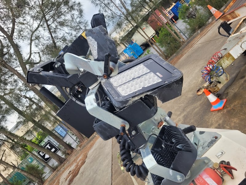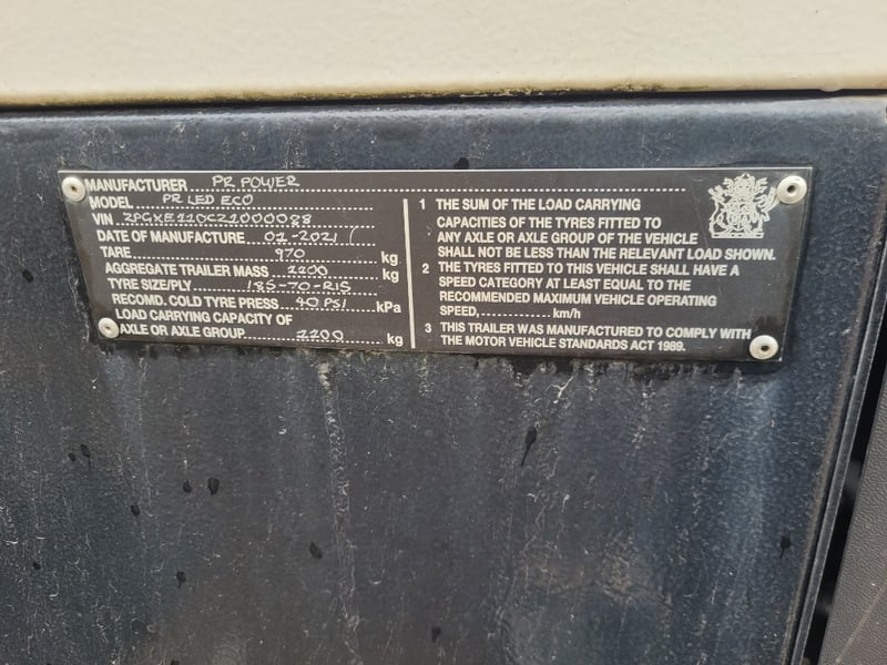 Description: forklift sleeves, x4 stabilizer legs Used, aggregate trailer mass 1100kg, isolator switch, emergency stop, note: damaged inspection recommended.