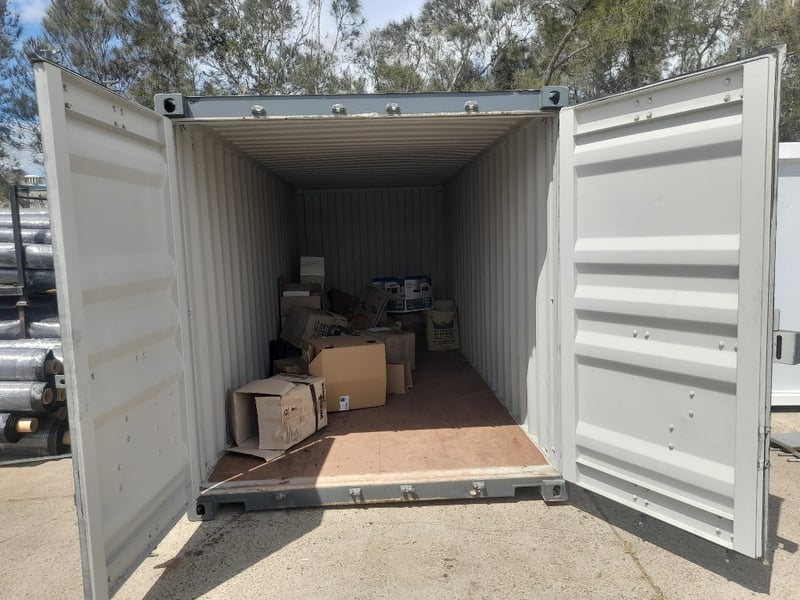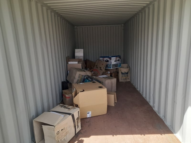 20ft shipping container in good condition, recently painted, good floor, contains many empty cardboard boxes