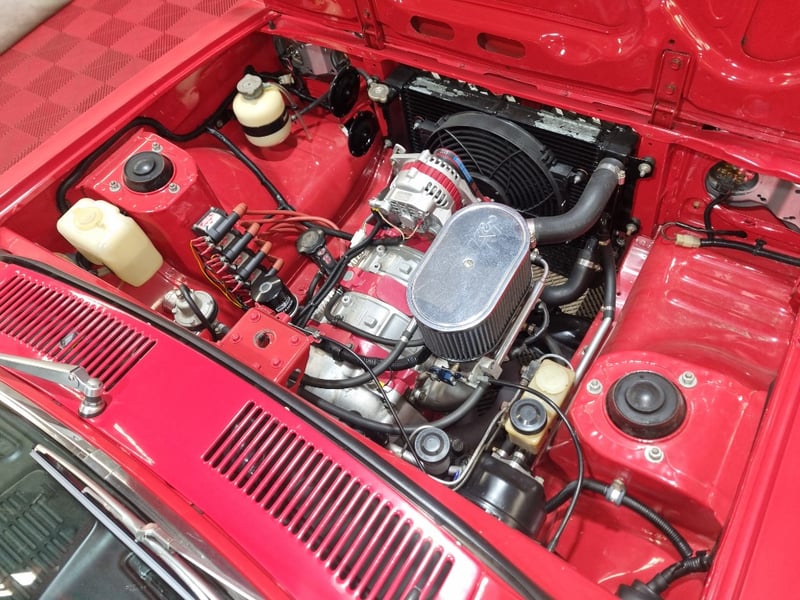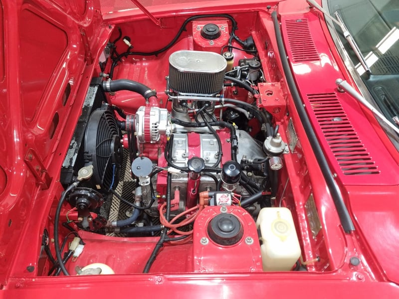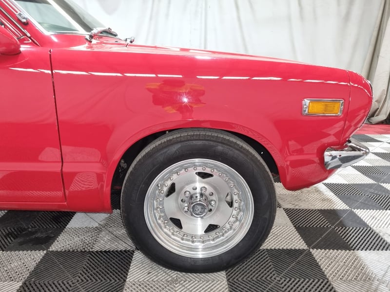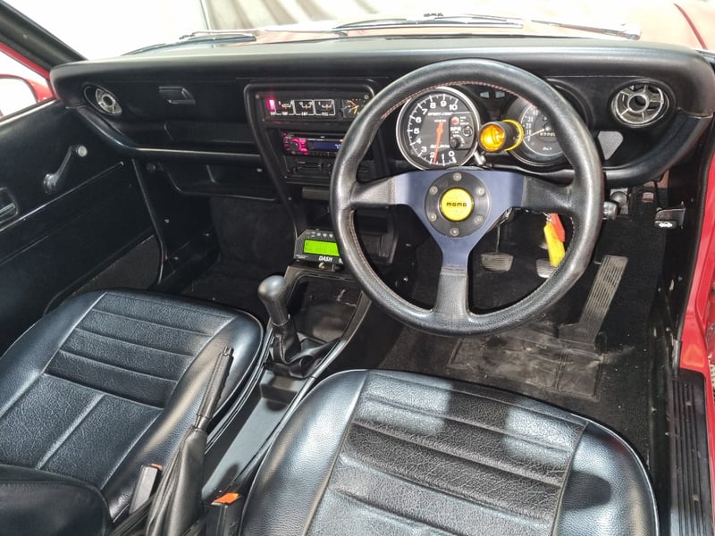 This example shows an indicated 93,390 miles and has been owned by the current custodian for the past 20 years. It features a 13B monster-port rotary engine with 55 mm injection setup, Phillard manifold, RX-7 Series 4 turbo gearbox, and a 9-inch differential. The battery has been relocated to the boot. Presented in Sunrise Red, this RX-3 offers an appealing combination of period styling and rotary performance enhancements.