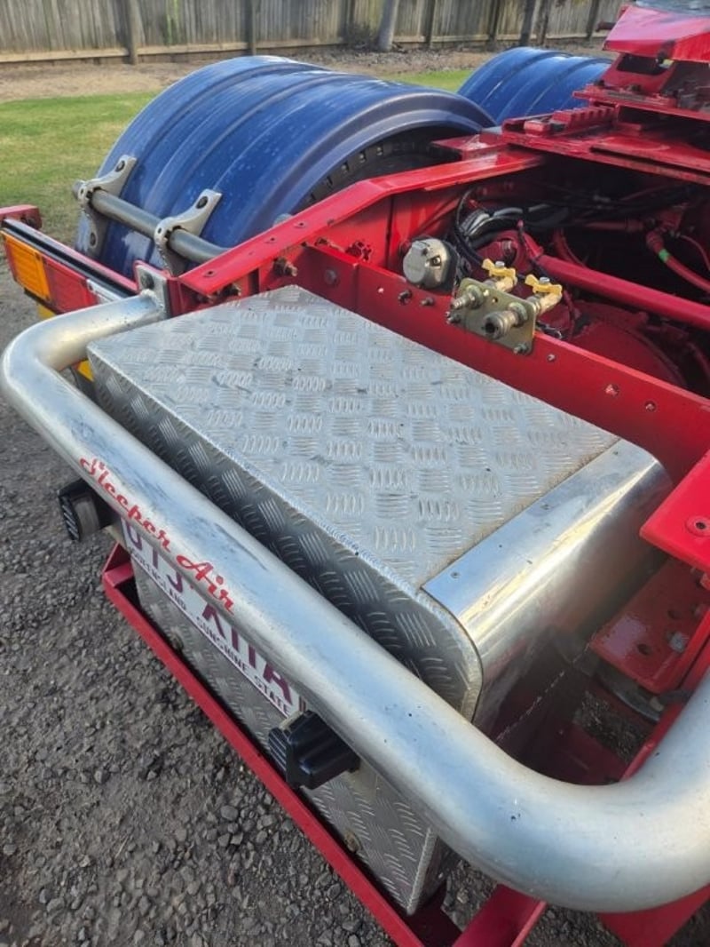 Description: 40" sleeper, Diesel sleeper air, under bunk drawer fridge, LED headlights, Outback Bull Bar, Oversize sign and beacons, Fixed greaseless Jost turntable and Jost slider, Air and electrics rear of cab and rear of chassis