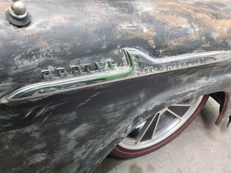 A heavily modified single-cab Apache pickup finished in a patinated rusted aesthetic, showcasing an extensive high-end performance build and custom fabrication throughout.