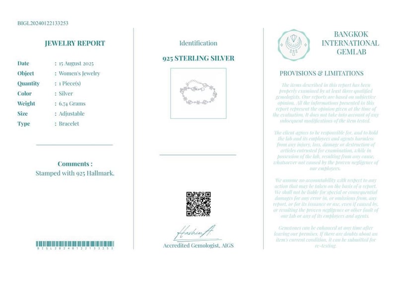 925 STERLING SILVER BRACELET - WITH CERTIFICATE