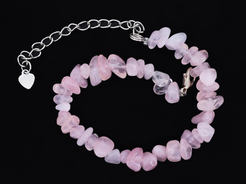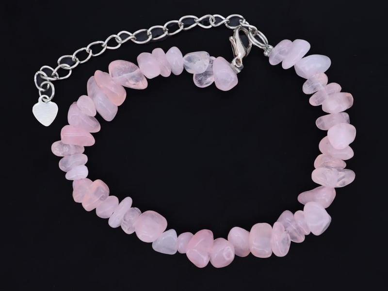 NATURAL ROSE QUARTZ FREEFORM BRACELET ON 925 SILVER - WITH CERTIFICATE
