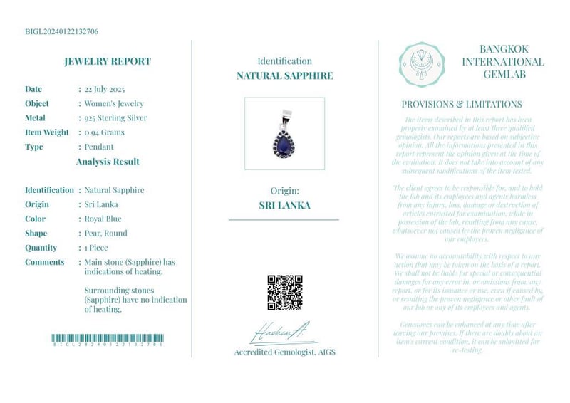 NATURAL SRI LANKAN SAPPHIRE PENDANT ON 925 SILVER - WITH CERTIFICATE