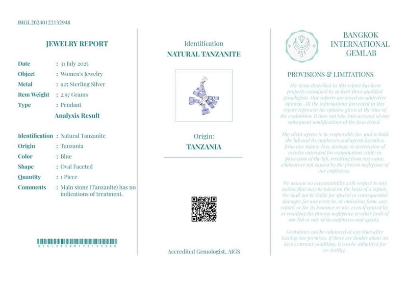Comments : Main Stone (Tanzanite) Has No Indications Of Treatment.