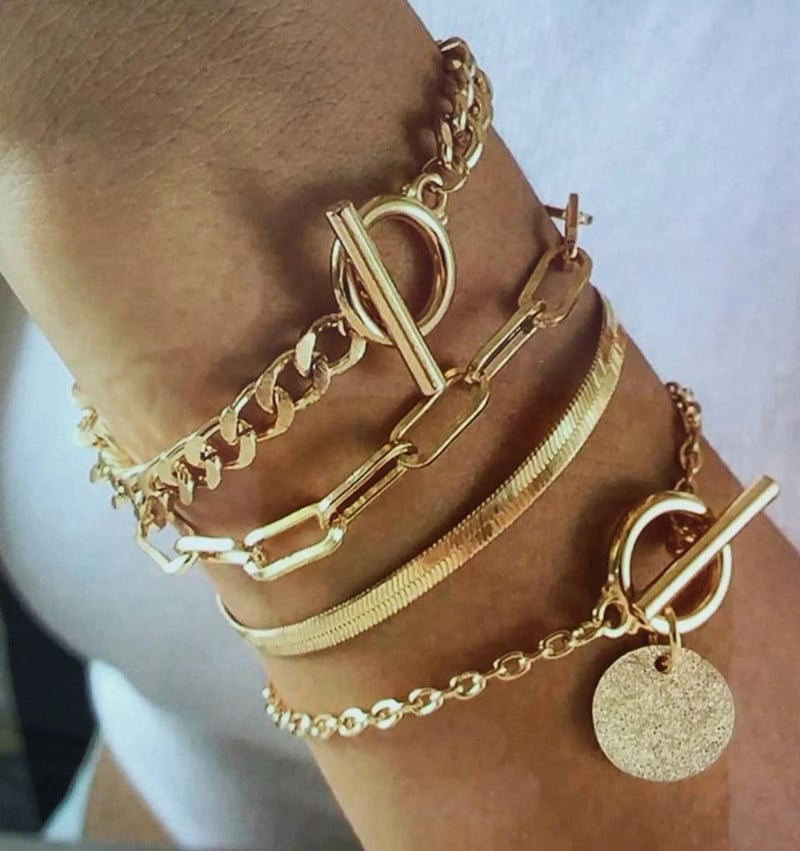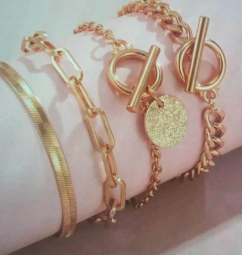 4 X PIECES OF GOLD STAINLESS STEEL BRACELETS