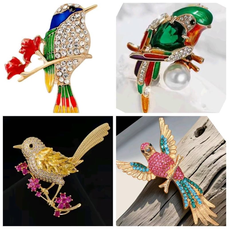4 X PIECES OF MULTICOLOURED CRYSTAL BIRD BROOCHES 0+18