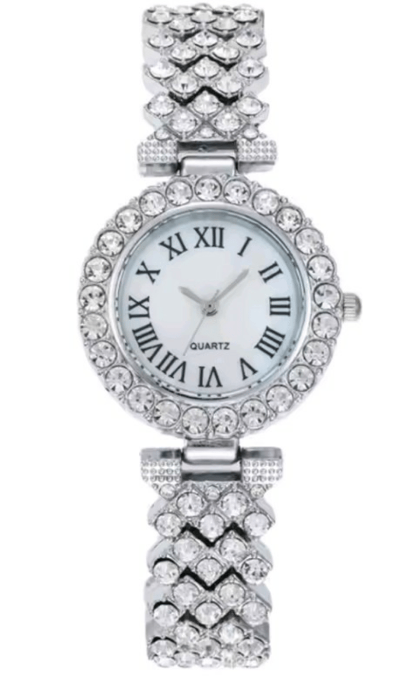 SILVER STAINLESS STEEL WATCH WITH CRYSTAL LINK BAND AND BRACELET 0+19