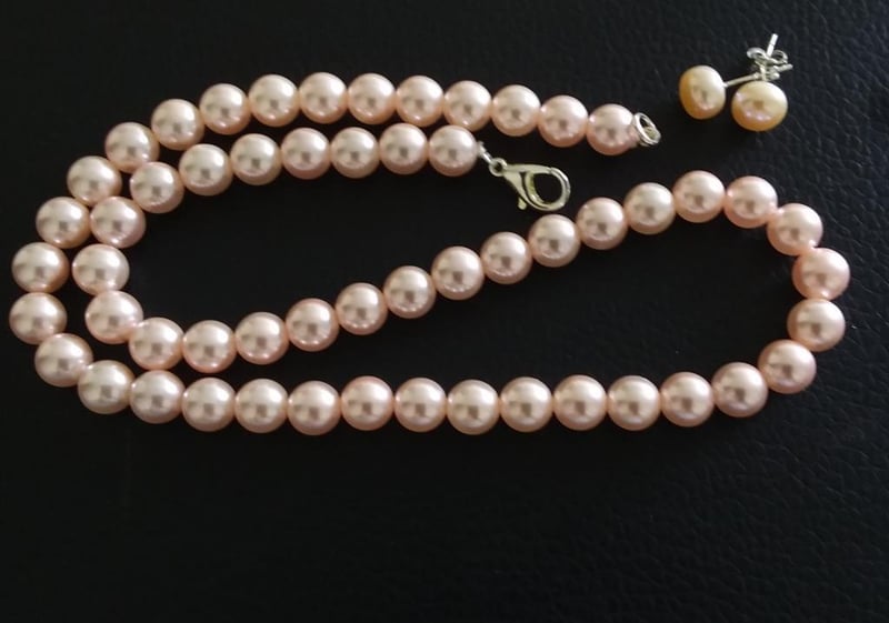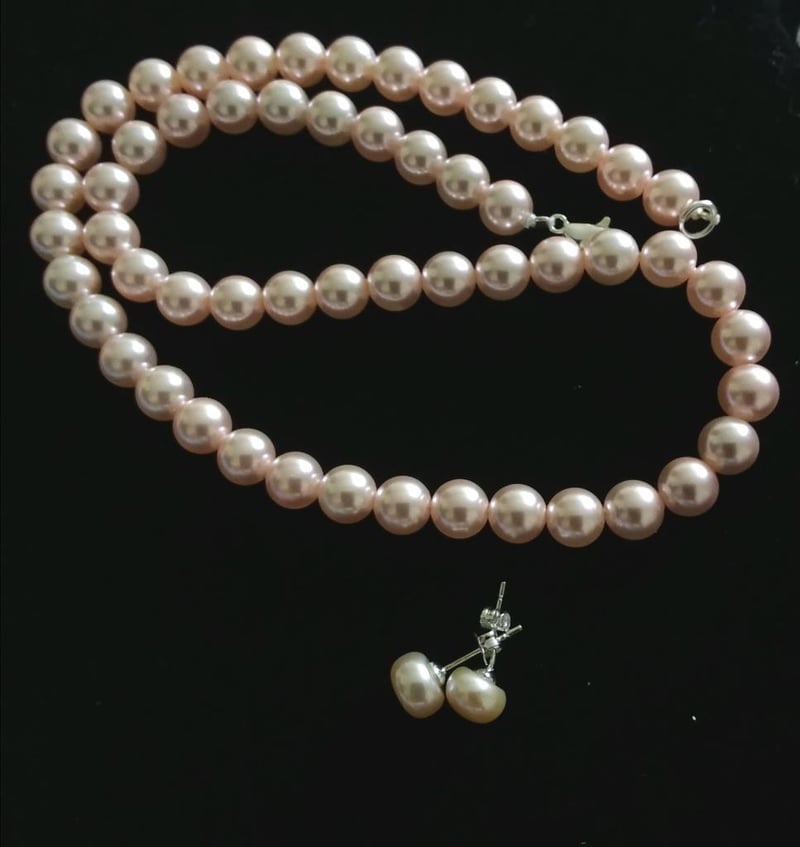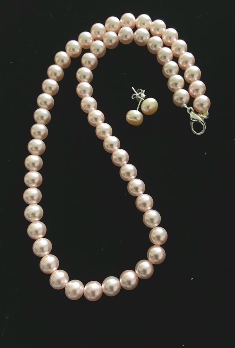 PINK 8MM SHELL PEARL NECKLACE WITH STUD EARRINGS 0+20