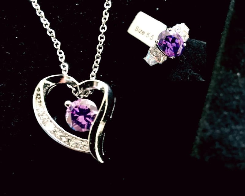 925 SILVER NECKLACE AND RING WITH AMETHYST CRYSTAL STONES