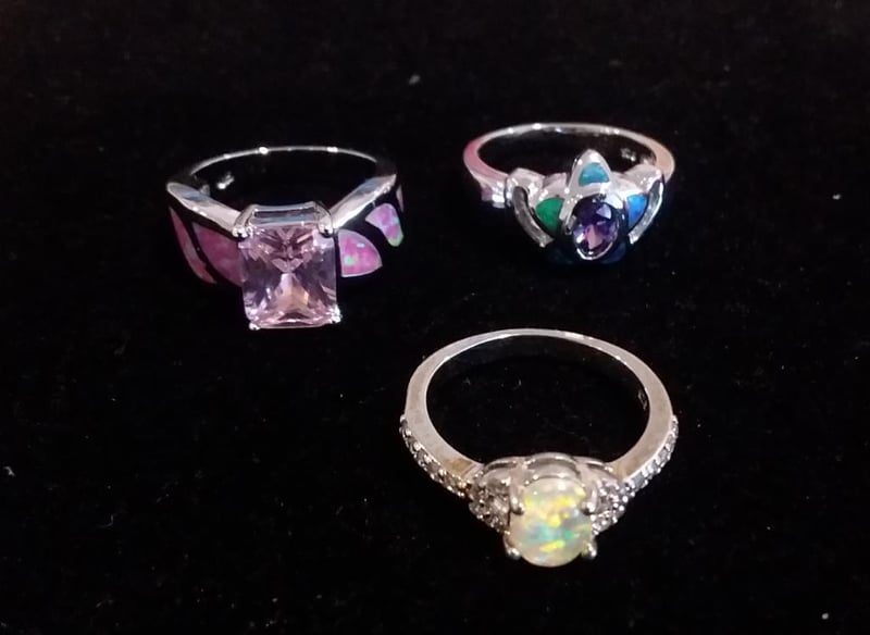 3 X 925 SILVER LAB CREATED FIRE OPAL RINGS SIZE 7 0+13