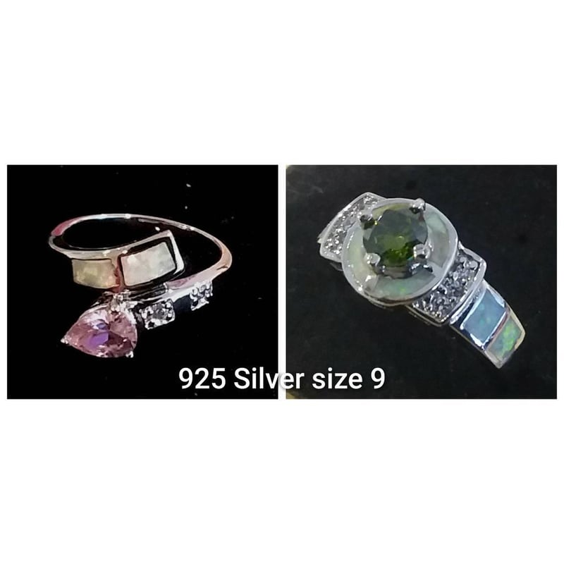 2 X 925 SILVER LAB CREATED FIRE OPAL RINGS SIZE 9