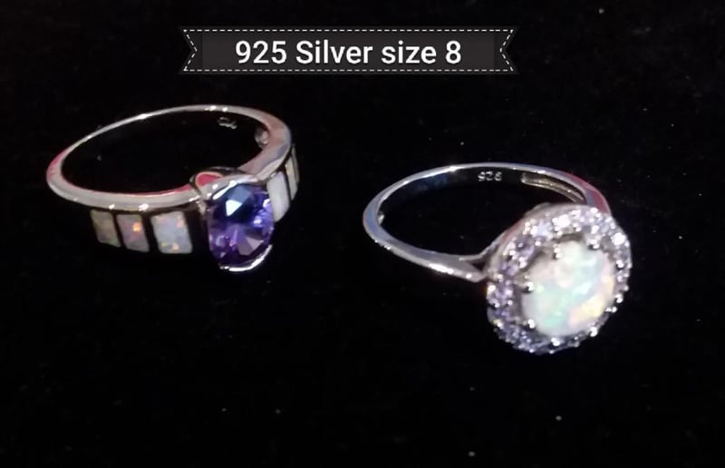 2 X 925 SILVER LAB CREATED FIRE OPAL RINGS SIZE 8