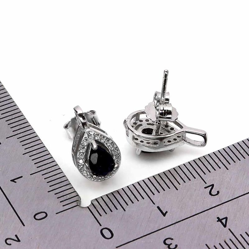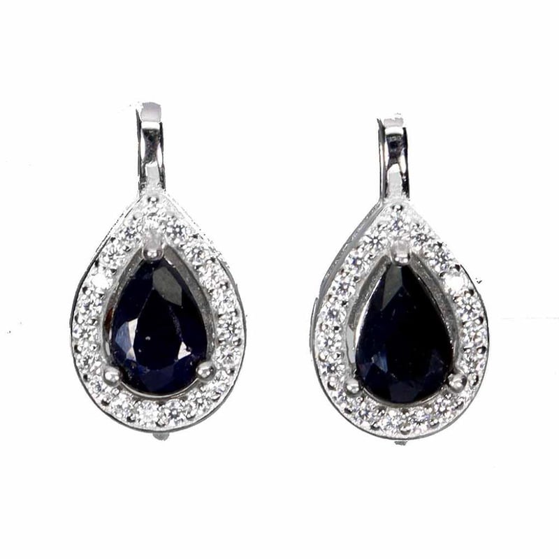 NATURAL SAPPHIRE EARRINGS Natural Sapphire Earrings. Made In Solid Sterling Silver And Plated In14K White Gold. Features Natural Midnight Blue Sapphires And Sparkling Czs. Earrings Measure 15.0 X 8.0 Mm. Condition: Good - Refer Images 0488360+32
