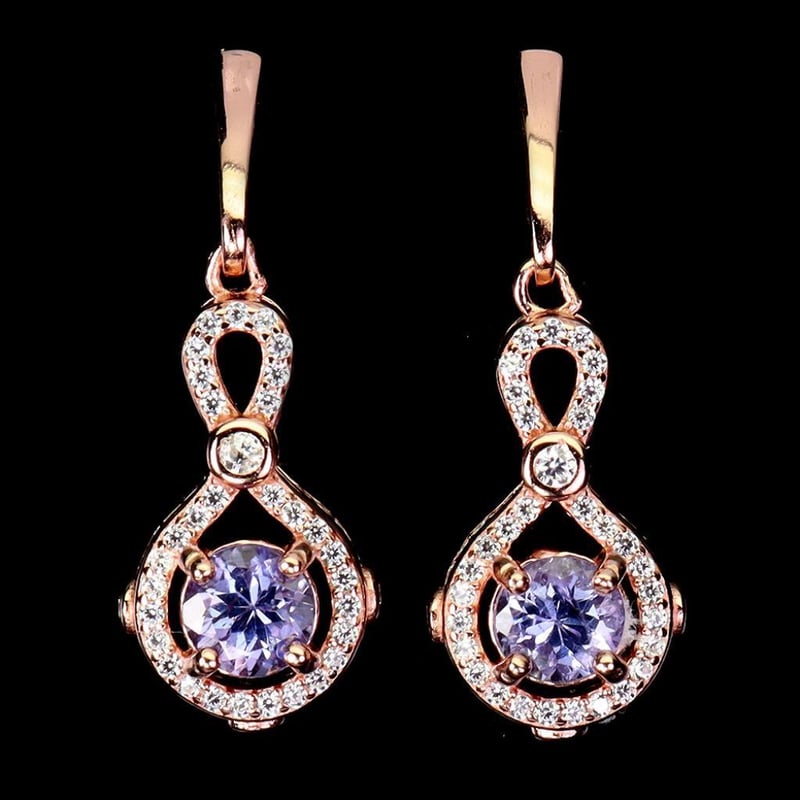 Natural Tanzanite Earrings. Made In Solid Sterling Silver And Plated In14K Rose Gold. Features Natural Violetish Blue Tanzanite'S And Sparkling Czs. Earrings Measure 26.0 X 9.0 Mm.