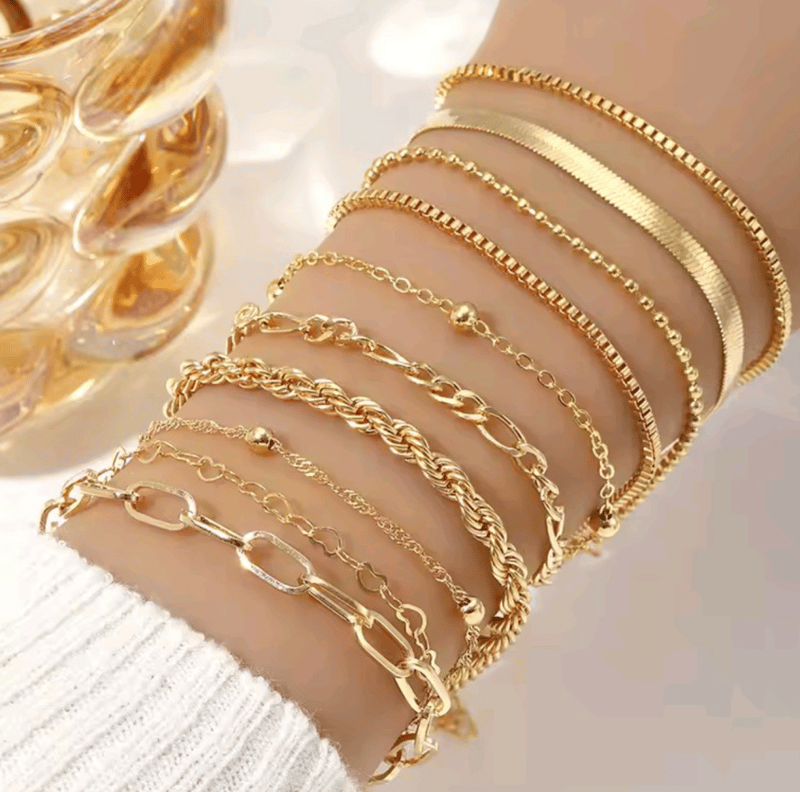 5 X GOLD COLOUR BRACELETS ANKLETS