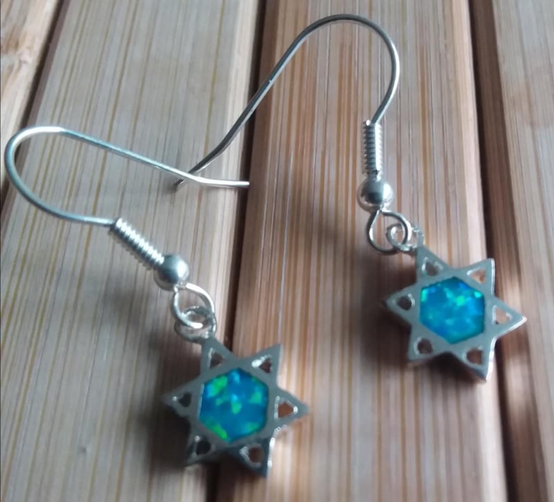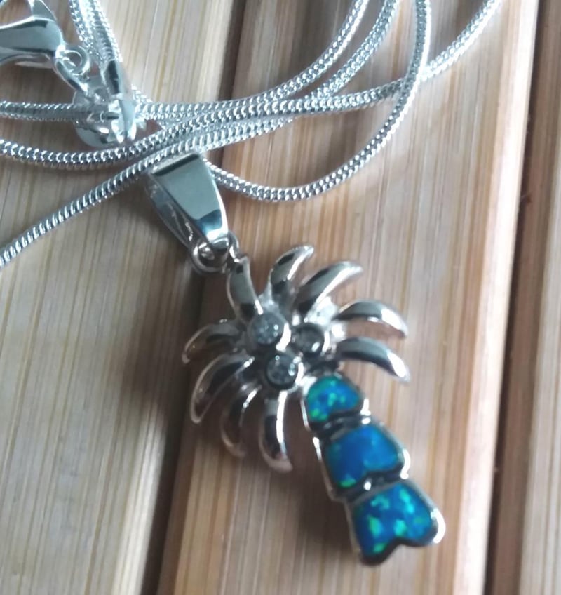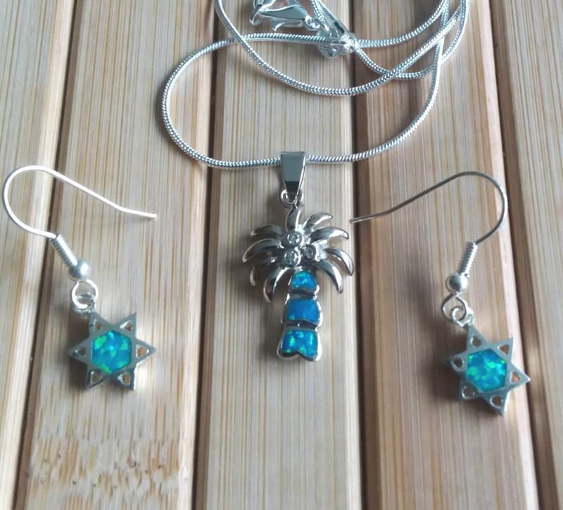 925 SILVER BLUE CREATED OPAL EARRINGS NECKLACE SET