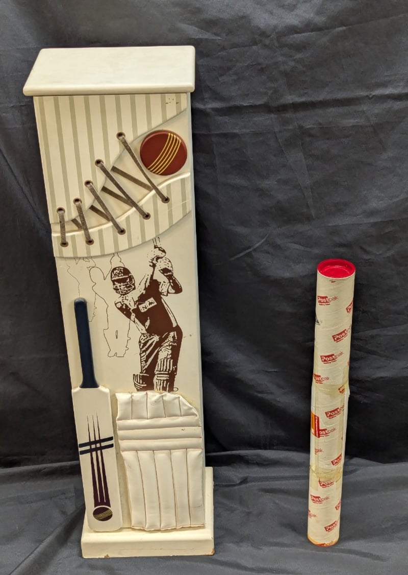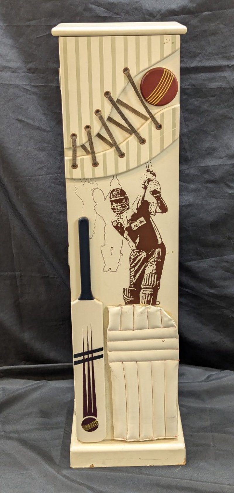 DECORATIVE CRICKET-THEMED CABINET AND LIMITED EDITION SHANE WARNE LITHOGRAPH
