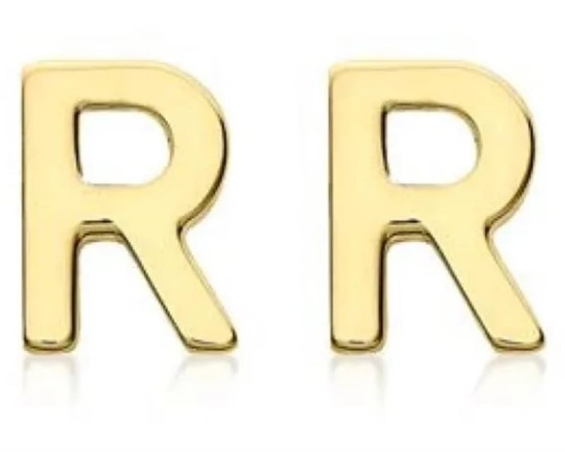 9Ct Yellow Gold Mini Initial 'R' Stud Earrings