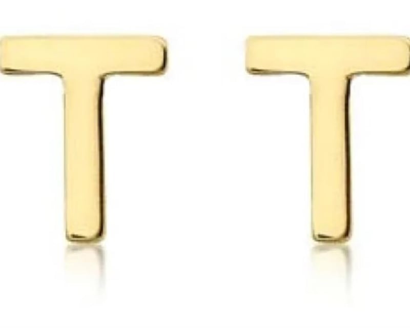 9Ct Yellow Gold Mini Initial 'T' Stud Earrings