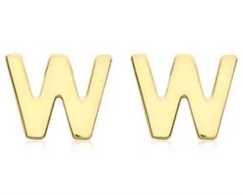 9Ct Yellow Gold Mini Initial 'W' Stud Earrings