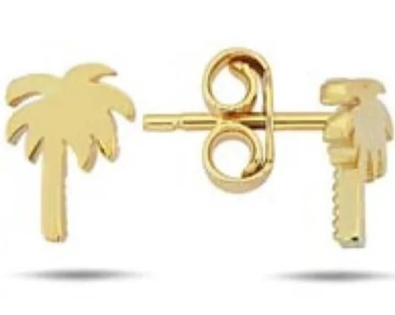 9CT YELLOW GOLD PALM TREE STUD EARRINGS
