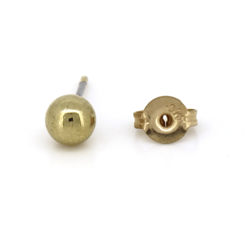 9K YELLOW GOLD, BALL STUD EARRINGS WITH 9K YELLOW GOLD BUTTERFLY CLASPS.