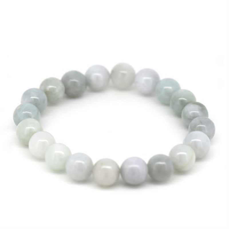 BURMESE JADE BEAD BRACELET, 20 ROUND, LIGHT TO MEDIUM SHADES OF GREEN, (174.