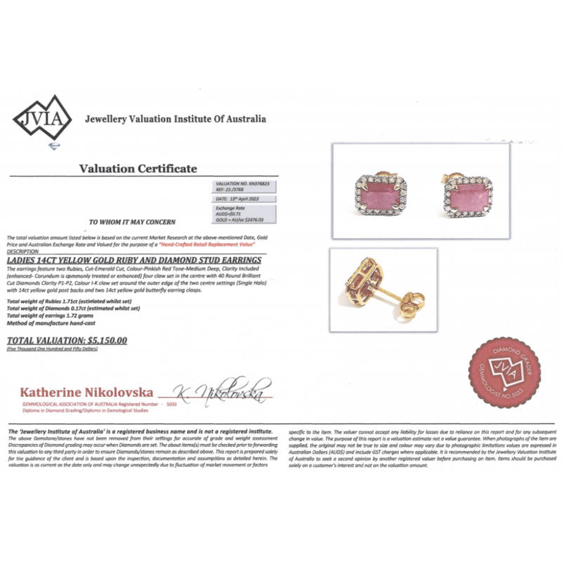 This Insurance Valuation has been provided by a registered Jewellery Valuer and is intended for insurance purposes only. The valuation amount has no bearing on the auction value of the item. Any questions regarding the valuation should be directed to the issuing Valuer (refer to contact details on the certificate) as Lloyds have no association or relationship with the Valuer or the valuation amount contained within the valuation.