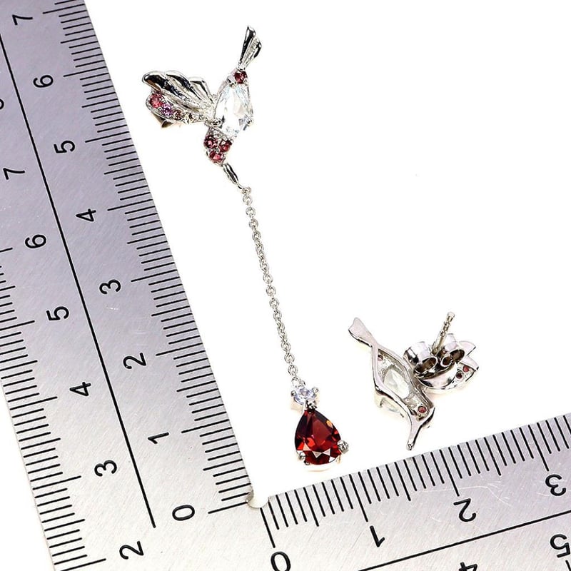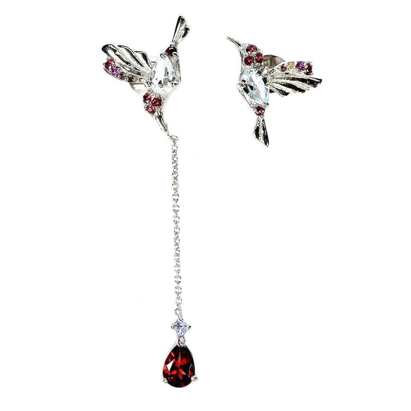 Natural Aquamarine Sparrow Earrings. Made In Solid Sterling Silver And Plated In14K White Gold. Features Natural Blue Aquamarine And Natural Rhodolite Garnets. Earrings Measure 53.0 X 8.0 Mm.