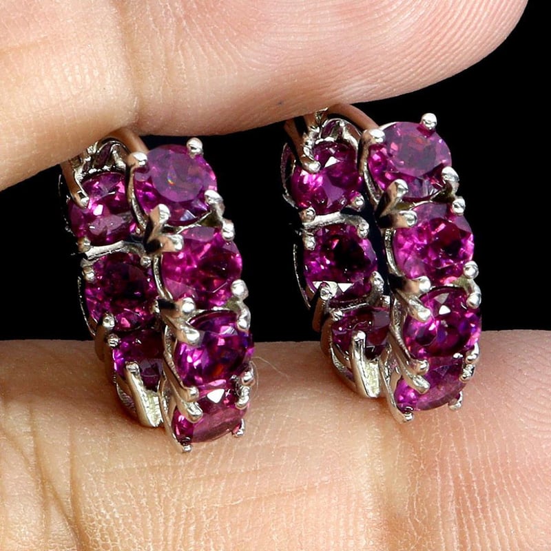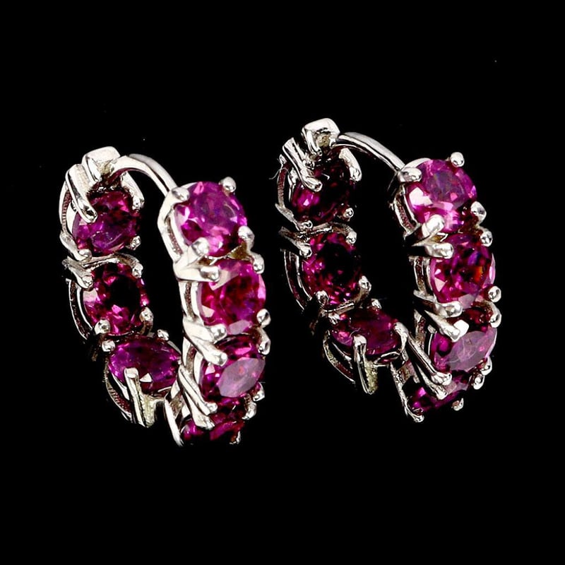 Natural Garnet Earrings. Made In Solid Sterling Silver And Plated In14K White Gold. Features Natural Rhodolite Garnets. Earrings Measure 17.0 X 4.0 Mm.