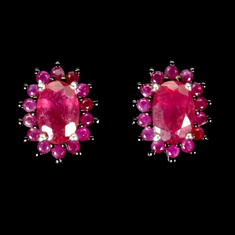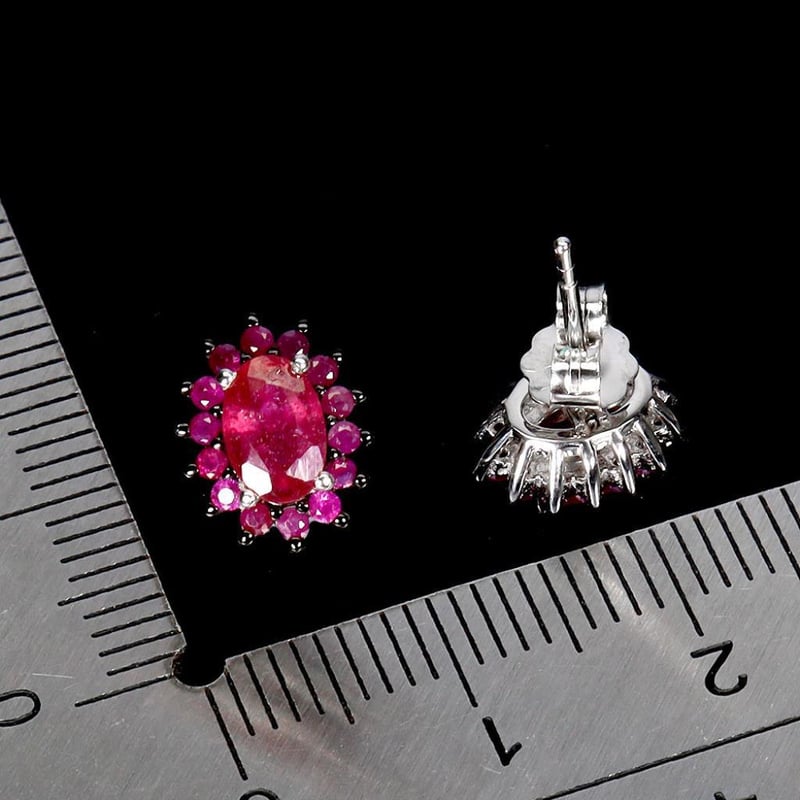 Natural Ruby Stud Earrings. Made In Solid Sterling Silver And Plated In14K White Gold. Features Natural Red Rubies. Earrings Measure 10.0 X 8.0 Mm.