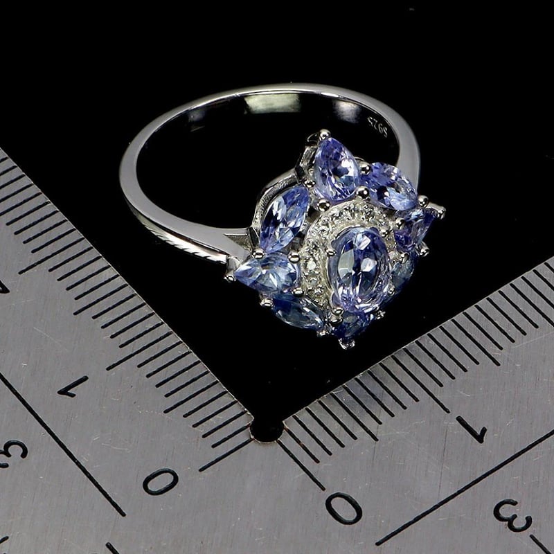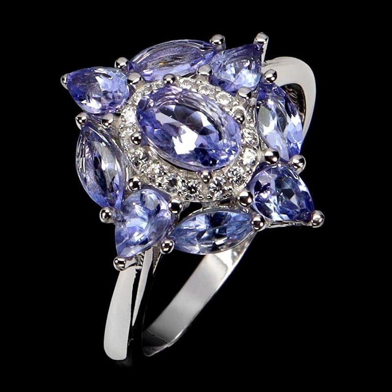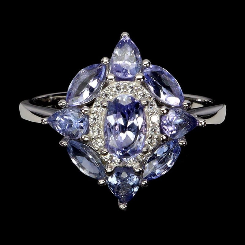 Natural Unique Tanzanite Ring. Made In Solid Sterling Silver And Plated In 14K White Gold. Features Natural Violetish Blue Tanzanite'S And Sparkling Czs. Ring Size 7